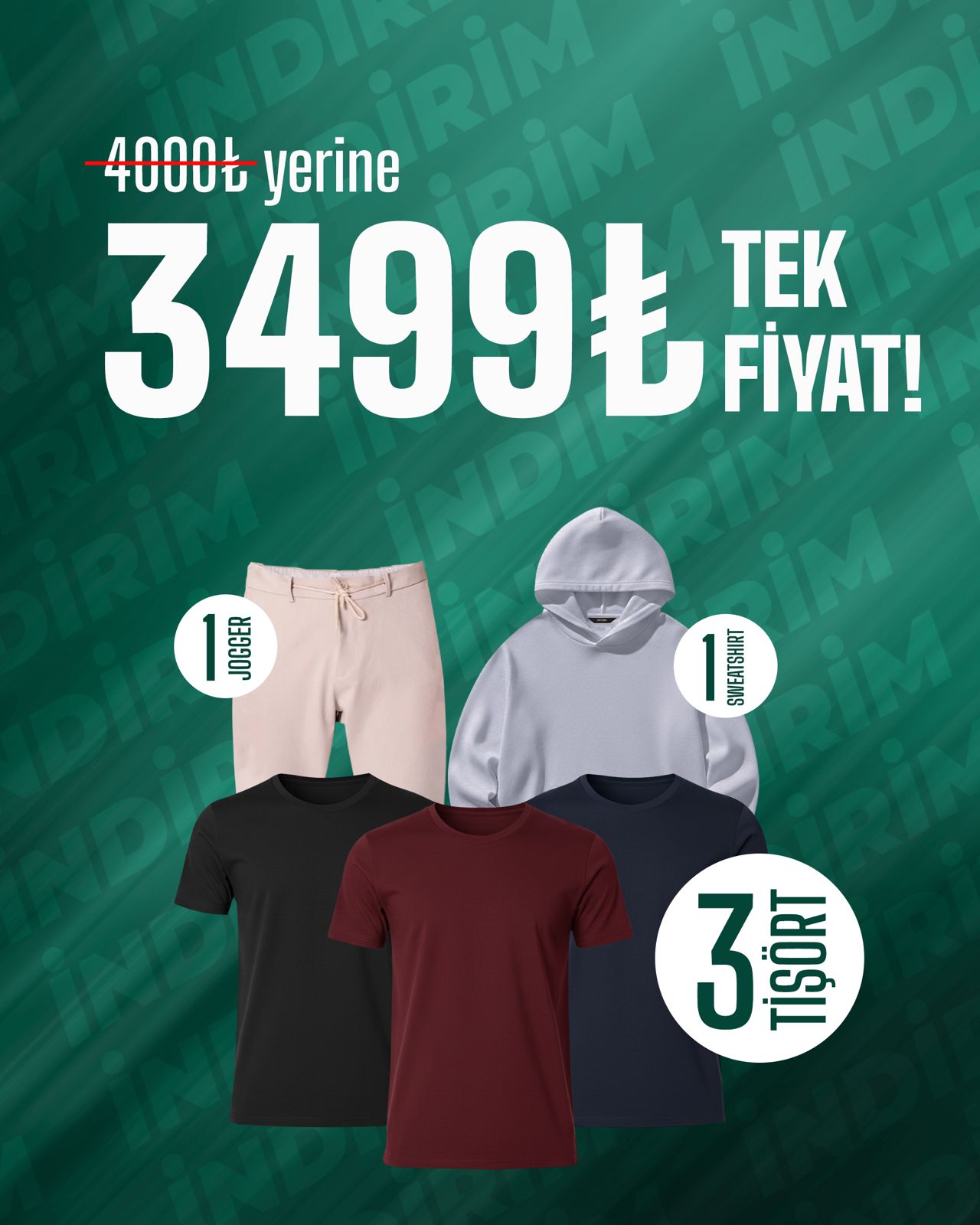 kASIMA ÖZEL İNDİRİMLİ 3 TİŞÖRT + 1 JOGGER KAMPANYASI