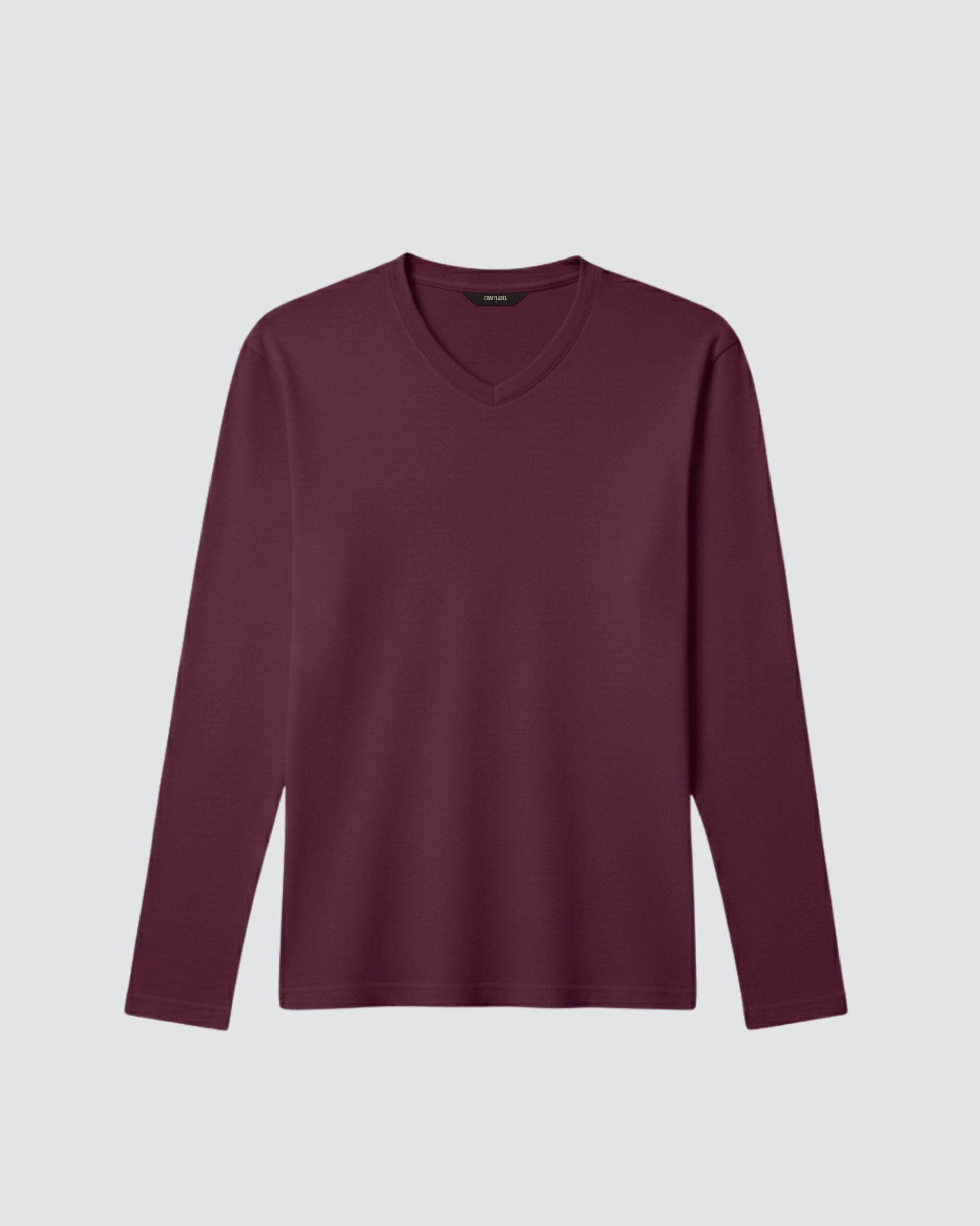 Bordo Uzun Kollu V Yaka Tişört